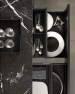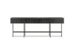 Дизайн буфетов Kenneth основан на сочетании их сильного строгого геометрического объема и тонкой опоры в виде металлических ножек цвета черного кофе, которые легко приподнимают их над полом.