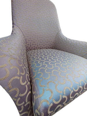 Шелк сиреневый,спинка сзади — натуральная кожа светоло-кричневая, обивка — шелк сиреневый.