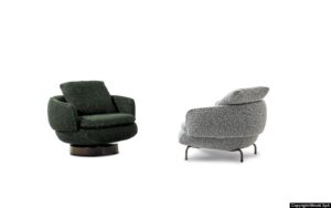 Кресла Vivienne с их утонченными пропорциями доступны с фиксированным или поворотным основанием, последнее имеет цилиндрическую форму, что придает им изысканную декоративную привлекательность.