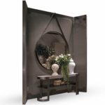 Современная ширма Recalcati от итальянского бренда Vittoria Frigerio с встроенным круглым зеркалом представляет собой впечатляющее решение для интерьера в классическом стиле. Эта модель выглядит роскошно благодаря своему уникальному дизайну. Широкая центральная часть сопровождается узкими боковыми элементами, а верхний и нижний края украшены темной фигурной каемкой. Деревянная конструкция ширмы с кожаной обивкой предоставляет дополнительные возможности для создания элегантного декора. Мебель в Итальянском стиле в нашем шоу-руме с доставкой по всей России и миру. Подробную информацию уточняйте в наших салонах.