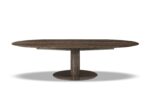 Обеденный стол Bellagio «Wood» опирается на одно гладкое основание из изогнутого дерева, облицованного морилкой цвета норки Sucupira, и опирается на металлическую опору с окрашенной глянцевой отделкой цвета бронзы.