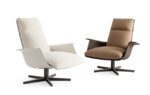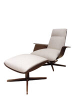Вращающееся кресло с пуфиком обволакивающей формы для создания инновационного комфорта.