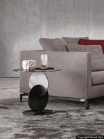 Изысканный журнальный столик Divo с вырезанными лазером дисками из черного никеля, собранными методом перекрестной сварки.