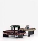 Легкий и изысканный журнальный столик, выразительная сила которого заключается в мастерском использовании лака, Louver имеет ножки из цельного ясеня цвета лакрицы, поддерживающие расклешенную столешницу, которая, кажется, деликатно покоится наверху, как если бы это был поднос.