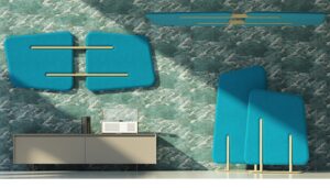 Звукопоглощающая перегородка Leaves напоминает в цветах и линиях растительную форму, которая отделяет окружающую среду, как акустическую, так и визуальную, эстетически приятным способом.