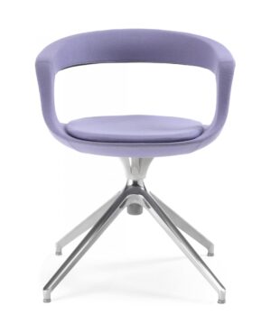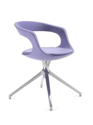 Мягкое кресло с 3-спицевым основанием из литого под давлением алюминия, лакированного или полированного.